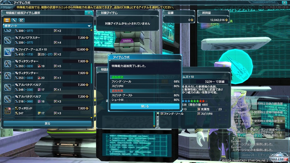 能力追加成功率+20%をつけていざ実行!!ドゥドゥさん頼んまっせ( ゚д゚ )クワッ