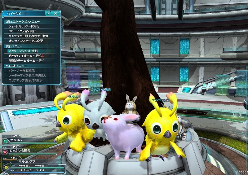 奥に色々な恩恵を受けることが出来る例の木(フォトンツリー)が見えます。ちょうど光ってますね。育てるのにもTPが沢山いるみたいです。